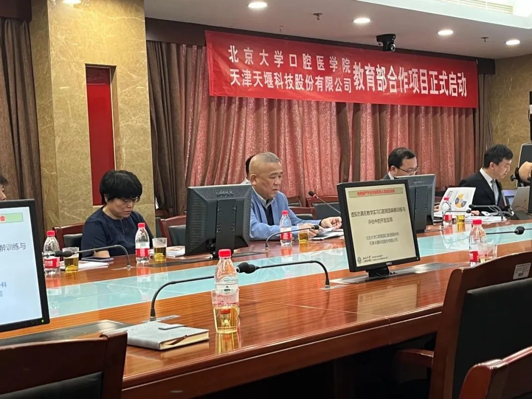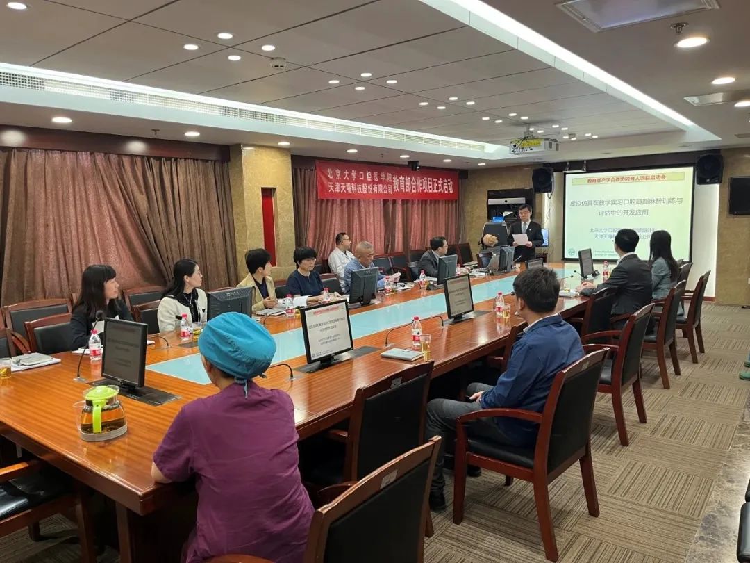 2023年4月24日,在这个春光明媚的日子里,北京大学口腔医院(北大口腔)与leyu-乐鱼(中国)官方网站_leyu.com (leyu-乐鱼(中国)官方网站_leyu.com)召开“虚拟仿真在教学实习口腔局部麻醉训练与评估中的开发应用”项目启动会。北大口腔副院长李铁军、中华口腔医学会副秘书长刘宏伟、北大口腔教育处长董美丽、虚拟仿真教研室主任侯建霞、口腔颌面外科副主任贺洋、leyu-乐鱼(中国)官方网站_leyu.com总经理刘雁飞、leyu-乐鱼(中国)官方网站_leyu.com口腔事业部总经理景颖等人出席,在项目总负责人崔念晖主任主持下,双方展开了热烈而有成效的会晤,确定该项目正式启动。