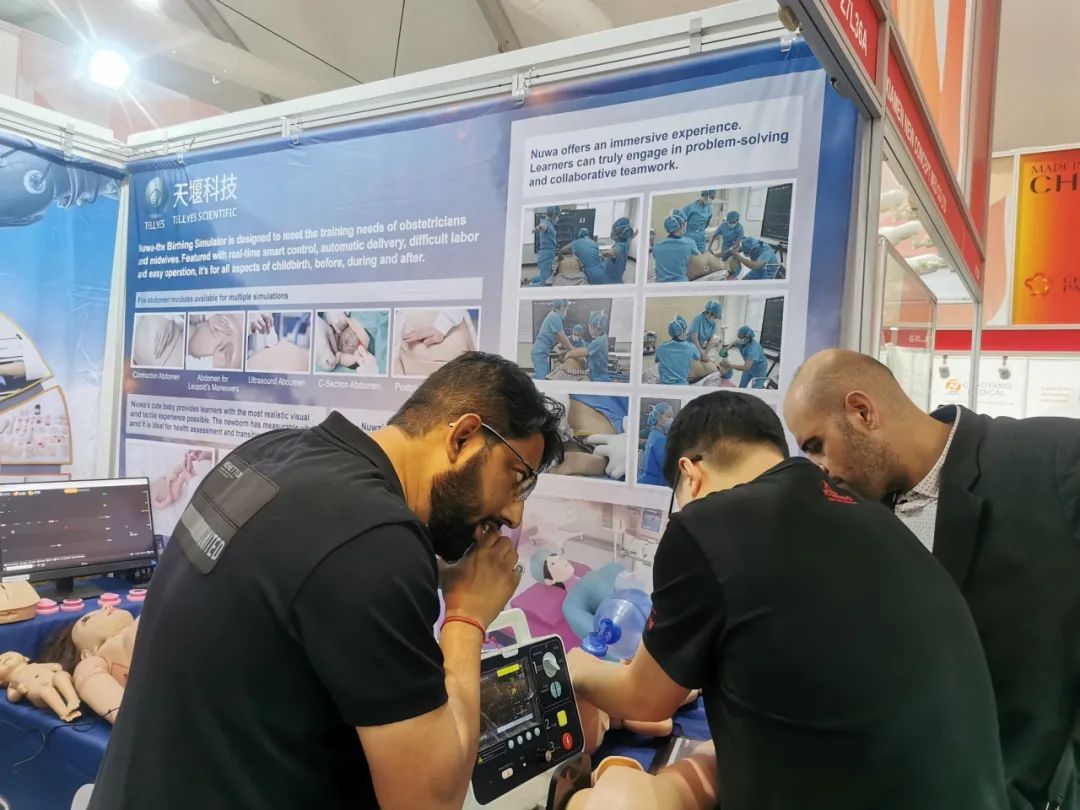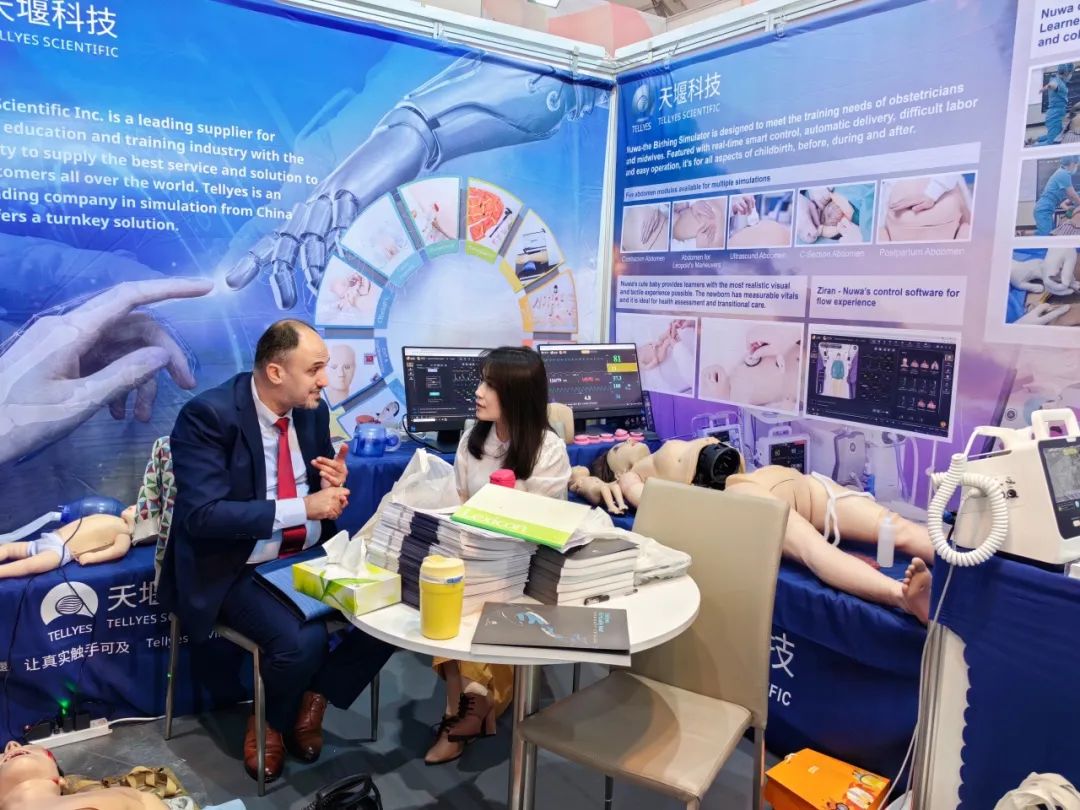 leyu-乐鱼(中国)官方网站_leyu.com自主研发生产的智能分娩模拟人“女娲”是世界级领先水平的模拟人,可高度还原产房分娩状况,模拟正常分娩、剖宫产及难产等场景,帮助导师进行基础与高级生命支持培训。该产品不仅解剖结构精准还拥有循环系统、呼吸系统、泌尿系统,可模拟多种生产体位、支持心肺复苏、胎心监测、心电监测,可通过软件控制,配备多种病例。“女娲”作为天堰最新科研成果,一经参展便吸引了众多客户前来参观,全新科技杰作“女娲”使leyu-乐鱼(中国)官方网站_leyu.com再次成为业界关注的焦点。
