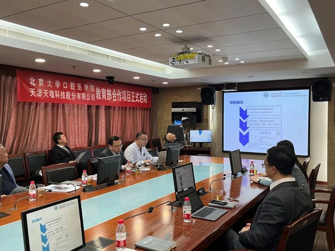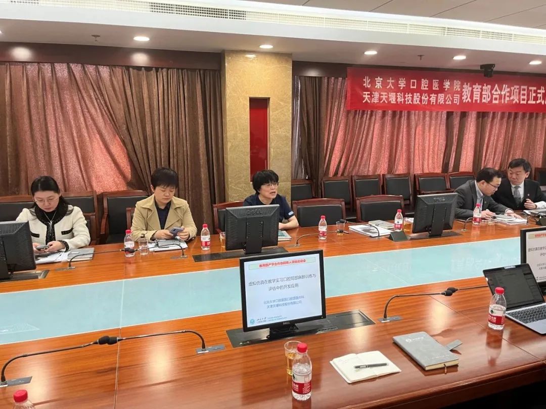 2023年4月24日,在这个春光明媚的日子里,北京大学口腔医院(北大口腔)与leyu-乐鱼(中国)官方网站_leyu.com (leyu-乐鱼(中国)官方网站_leyu.com)召开“虚拟仿真在教学实习口腔局部麻醉训练与评估中的开发应用”项目启动会。北大口腔副院长李铁军、中华口腔医学会副秘书长刘宏伟、北大口腔教育处长董美丽、虚拟仿真教研室主任侯建霞、口腔颌面外科副主任贺洋、leyu-乐鱼(中国)官方网站_leyu.com总经理刘雁飞、leyu-乐鱼(中国)官方网站_leyu.com口腔事业部总经理景颖等人出席,在项目总负责人崔念晖主任主持下,双方展开了热烈而有成效的会晤,确定该项目正式启动。